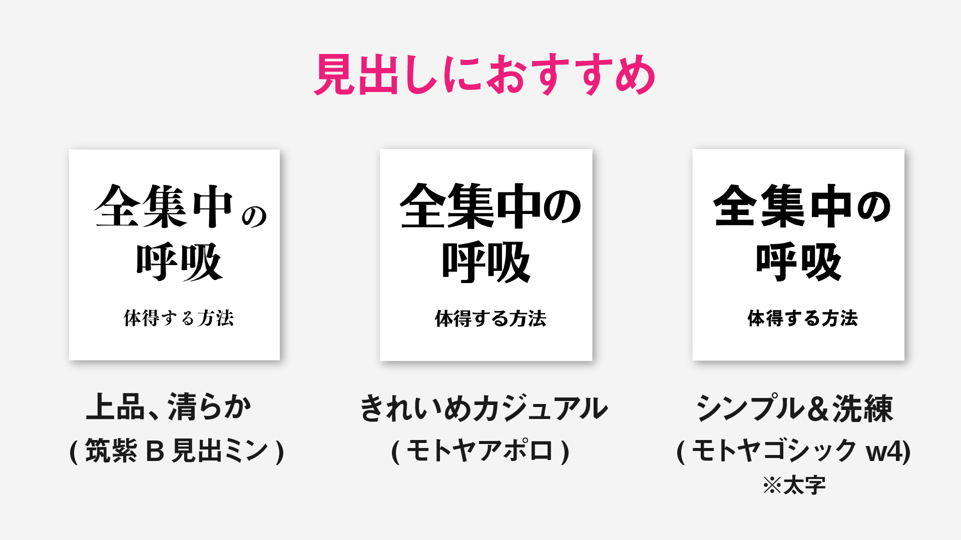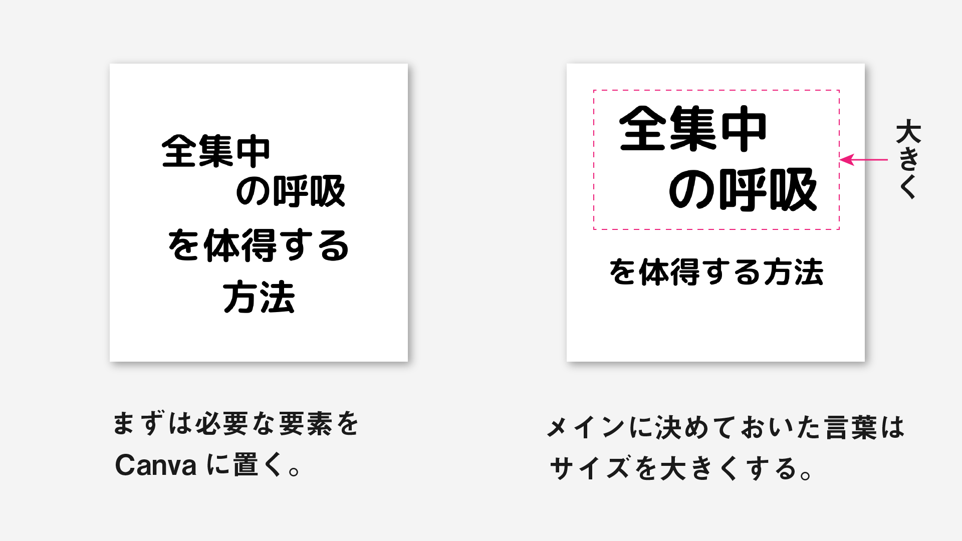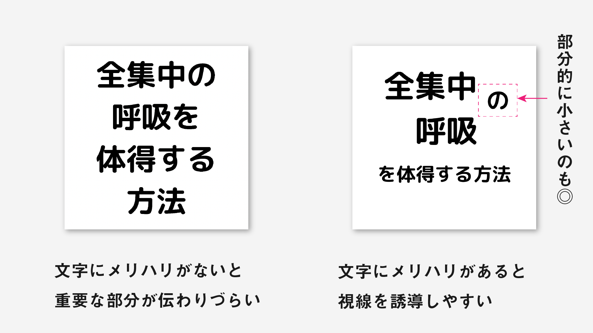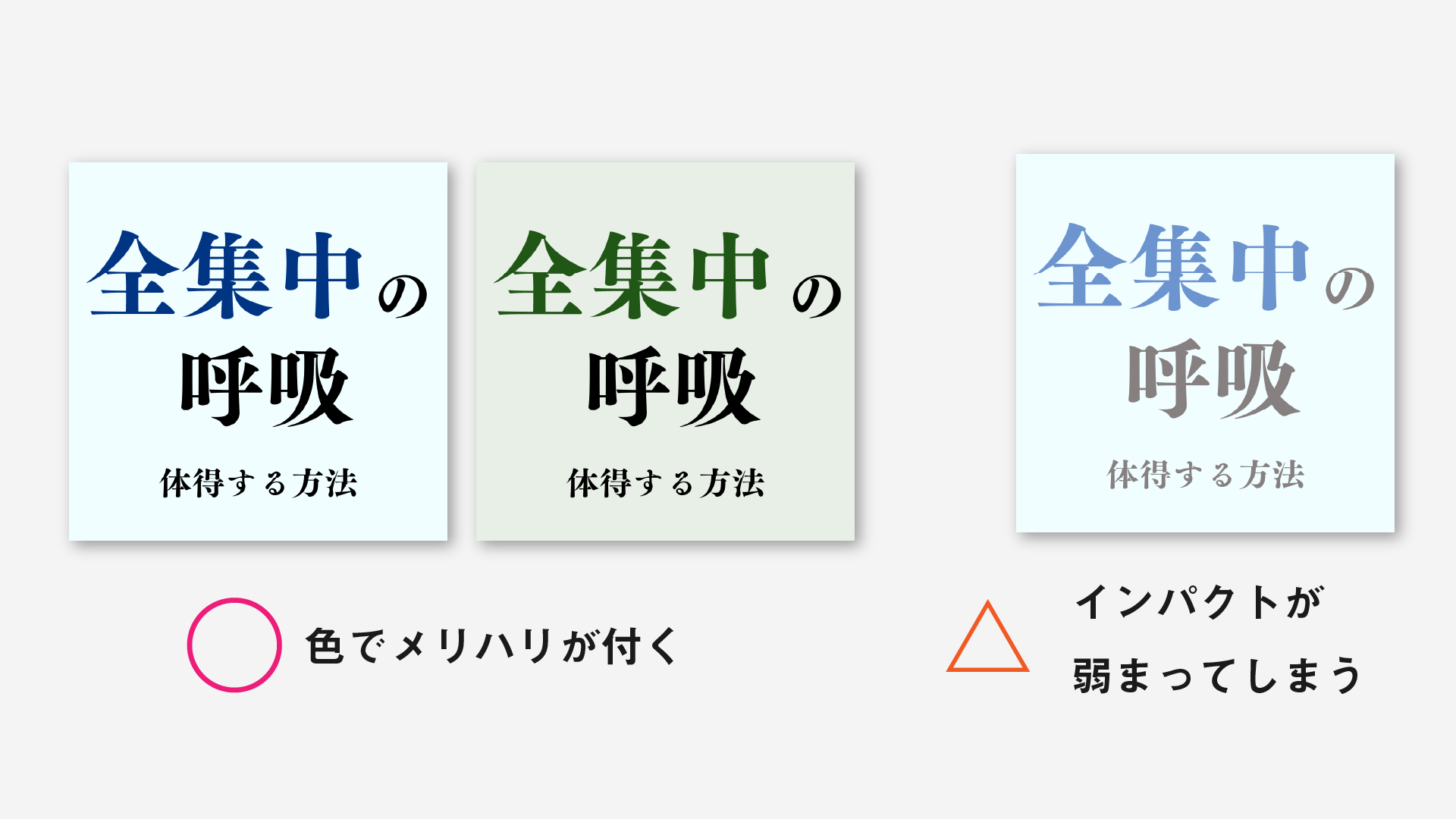 しっかりコントラスト(濃淡)を分けることで読ませたい文字に視線が集まるようになります。