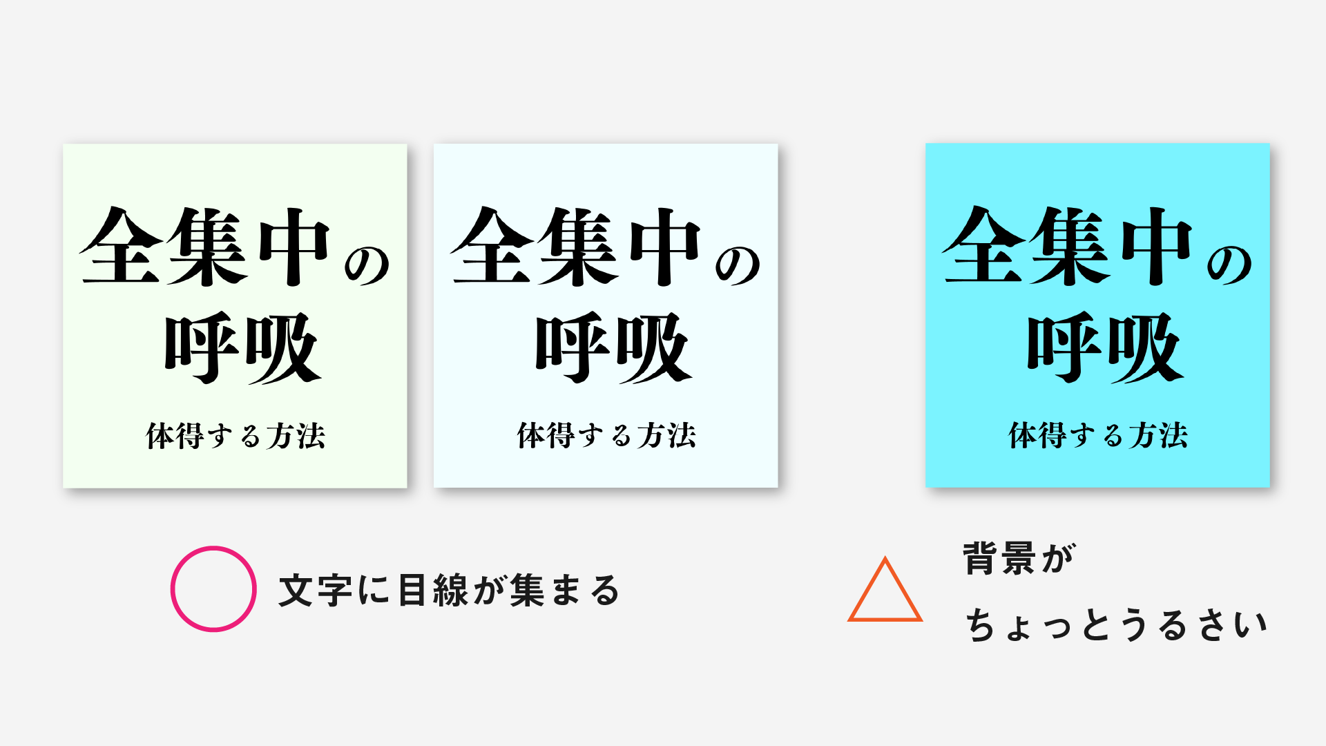濃いめの色にして、文字を白抜きにする方法もありますが、全体のカラーが濃いと重たい印象になりやすく、扱いづらいので、まずは「ほんのりカラー」でデザインできるようになっていきましょう。