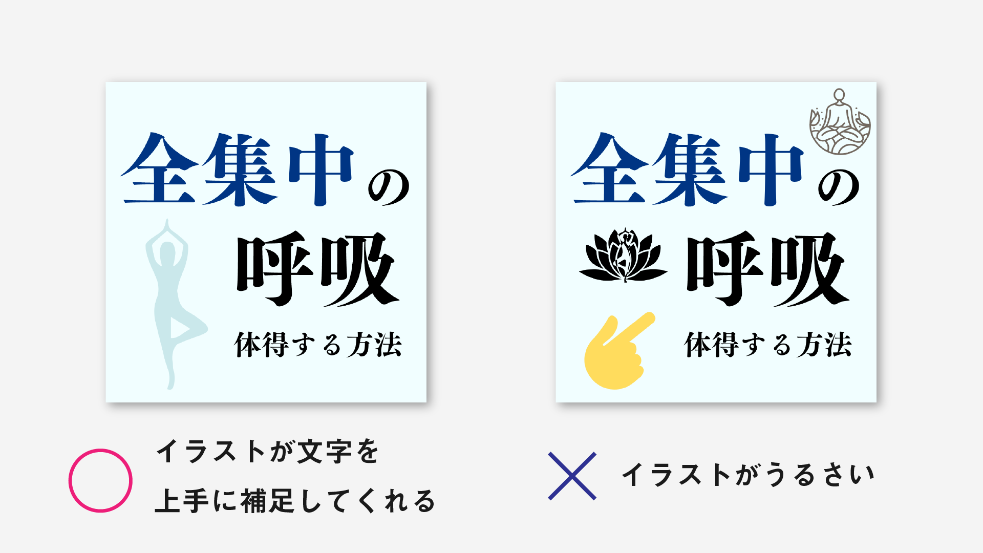 文字だけで全体のバランスが悪い、物足りないと感じるときにワンポイント付け加える程度にしましょう。