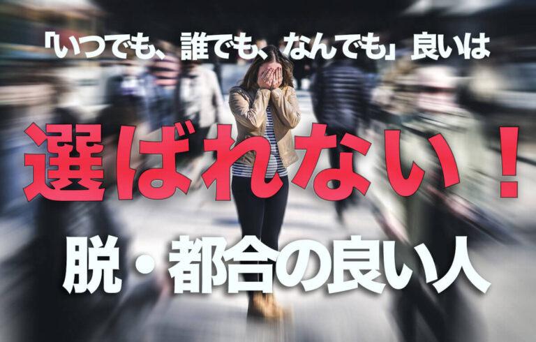 個人でビジネスをしていこうとするときに、絶対にやっては行けない起業スタイルというものがあります。「誰でも」「いつでも」「なんでも」いいというスタンスが最も危険です。それを恋愛に置き換えて考えていきましょう!
